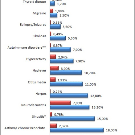 Autor chirurg cituje Kochovu studii očkovaných a neočkovaných skupin dětí jako potvrzující účinnost očkování . Před lety jsem se výzkumu chtěla účastnit, tak jsem tehdy vyplnila celý dotazník, byl však limitován věkem. Sledovala jsem ale jeho výsledky a zkopírovala si tento již těžko dostupný graf: